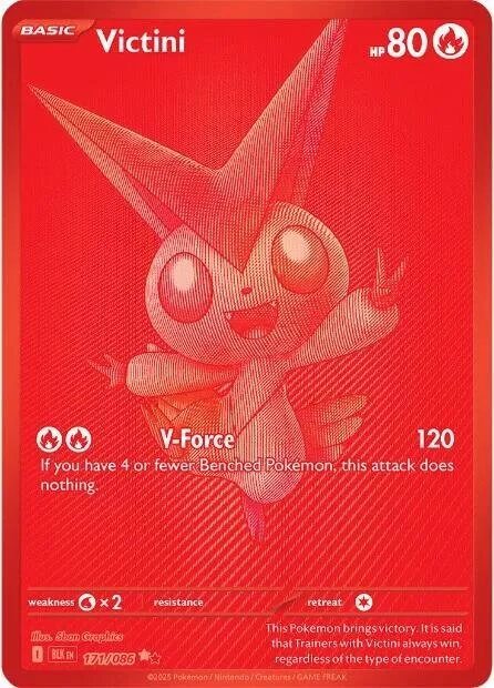 - Waarom populair? Victini is een mythische Pokémon met een strakke monochrome look, wat het een topcollectorsitem maakt.