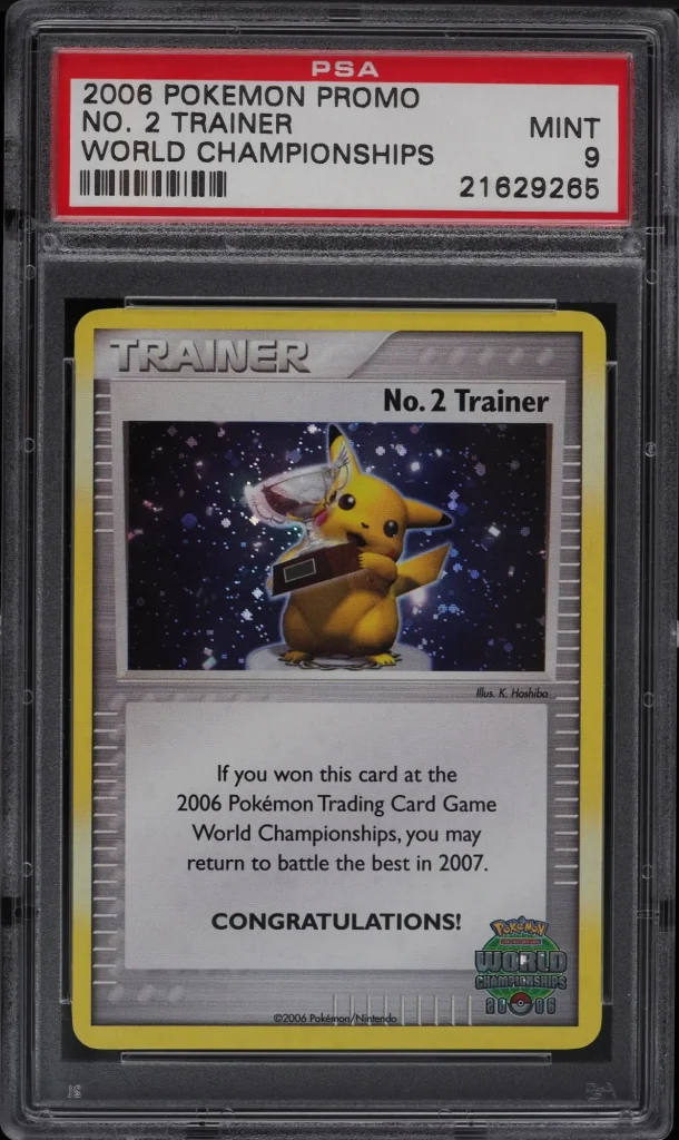 Tijdens een veiling georganiseerd door PWCC werd de kaart verkocht voor een indrukwekkende € 99.609. Meer dan 100 bieders streden om dit zeldzame exemplaar, wat laat zien hoe gewild deze kaart is. Mocht er in de toekomst nog een Pokemon World Championships Promo No. 2 Trainer kaart opduiken, dan is de kans groot dat de kaart een nog hogere plek op deze ranglijst zal veroveren.